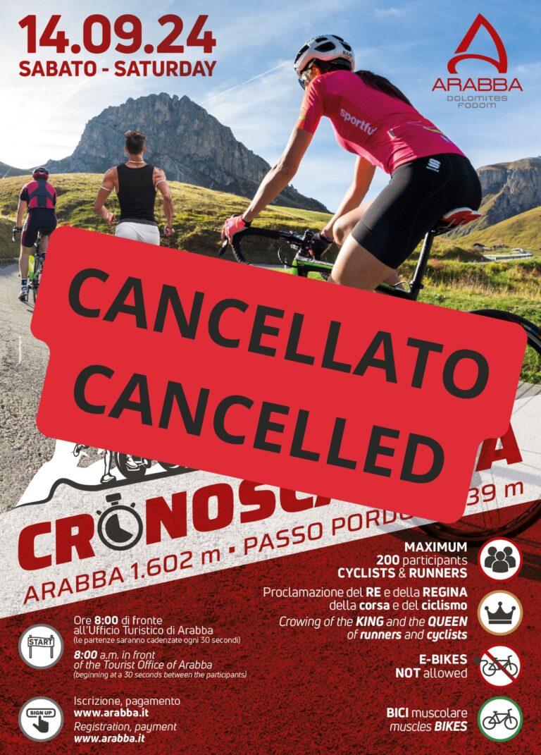 Annullamento della Cronoscalata Arabba – Passo Pordoi Bike & Run prevista per il 14 settembre 2024
