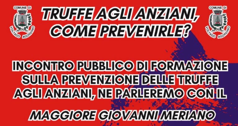 A VOLTAGO INCONTRO FORMATIVO CON I CARABINIERI SULLA PREVENZIONE DELLE TRUFFE AGLI ANZIANI