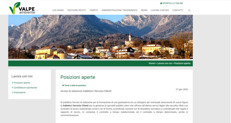 VALPE AMBIENTE CERCA ADDETTI AL SERVIZIO CLIENTI: APERTE LE CANDIDATURE