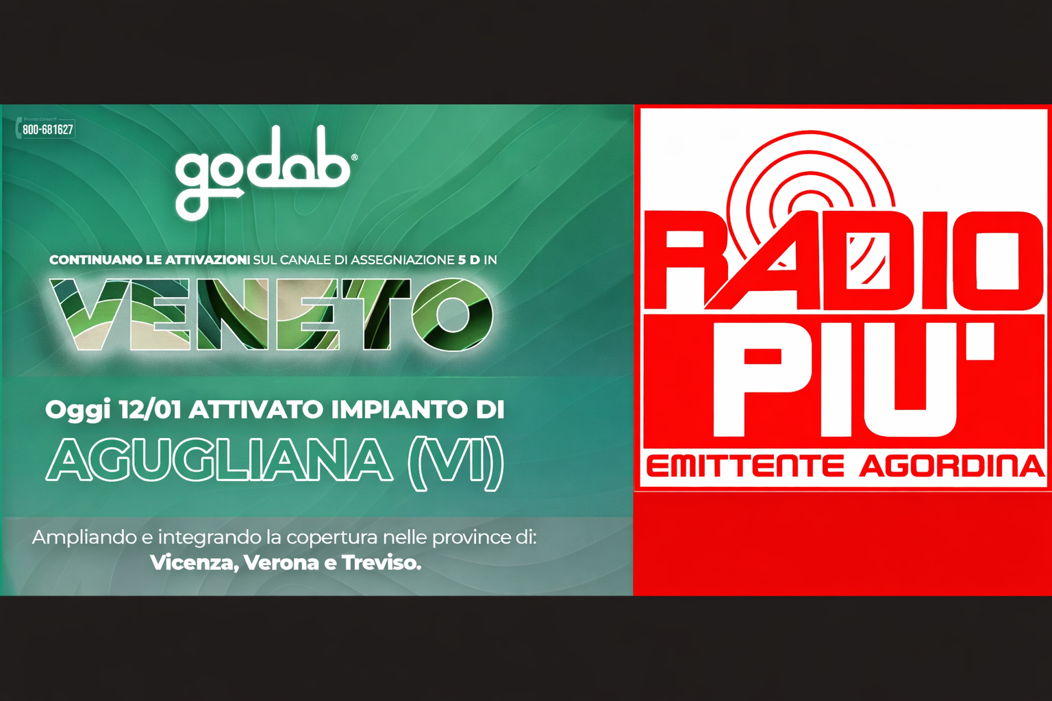 La copertura DAB+ di Radiopiù compie un altro passo avanti. Dopo l’attivazione dell’impianto di Desenzano, è ufficialmente operativo anche il ponte radio di Agugliana, nel Vicentino. Un tassello importante per l’emittente agordina che, grazie al consorzio di rete GoDAB, continua a crescere fuori dai confini dolomitici. Il nuovo impianto permette infatti di ampliare e integrare la ricezione nelle province di Vicenza, Verona e Treviso, portando informazione locale, musica e programmi storici ad ancora più ascoltatori. Un risultato che conferma la volontà della radio — nata in Agordino ma ormai ascoltata ben oltre le montagne — di investire sul digitale e sulle nuove tecnologie senza perdere il legame con la comunità e il territorio. La copertura DAB+ è in continua espansione e Radiopiù seguirà passo passo le future accensioni. La voce dell’Agordino corre ora più lontano: sempre in FM, online e in digitale DAB+. Stessa strada per Radio Club103 Dolomiti e Radio Primiero – circuito 3 RADIO