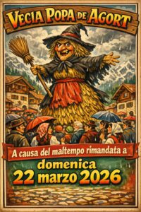 AGORDO La Vecia Popa 2026, in programma domenica sul Broi di Agordo, è stata rimandata di una settimana a causa delle previsioni meteo che per il fine settimana prevedono maltempo. L’appuntamento è rimandato a domenica 22 marzo.