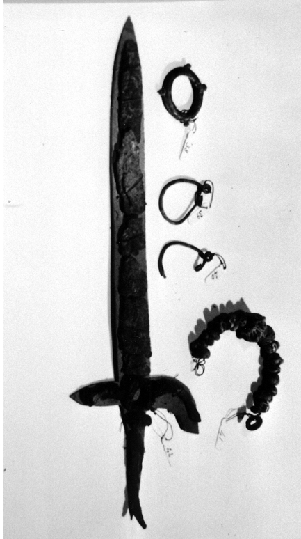 Integrazioni di Tiziano De Col: mi fu riferito , a metà anni ’90 del secolo scorso, da Del Col Benito (nato nel 1930) , la cui famiglia abitava nel Casàl, che il ritrovamento in località El Pian fu fatto durante i lavori per la costruzione della casa di De Col Antonio (Toni Toni), parente della famiglia di De Col Benito e molto probabilmente anch’egli prima abitante nel Casàl ,e precisamente durante lo scavo della fossa che doveva essere utilizzata per mettere la calce da costruzione (busa de la Kauzina). Mi fu anche riferito che nell’estrarre il pugnale (chiamato spada dall ‘informatore) lo stesso, che sembrava integro, si ruppe in diversi pezzi, infatti sulla foto i pezzi sono posizionati su di una sagoma che rappresenta la forma originale del pugnale. Le fotografie dei reperti sono di Don Ferdinando Tamis. (Archivio Fotografico Tiziano De Col).