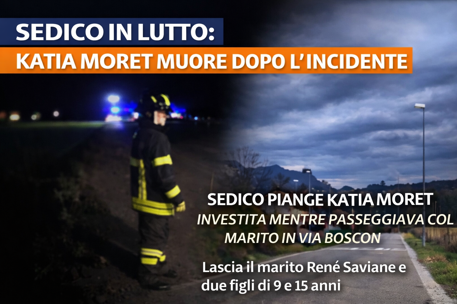 Sedico è sotto shock per la scomparsa di Katia Moret, la donna investita lunedì 16 marzo lungo l’anello in via Boscon. Le ferite riportate nell’incidente si sono rivelate purtroppo fatali.