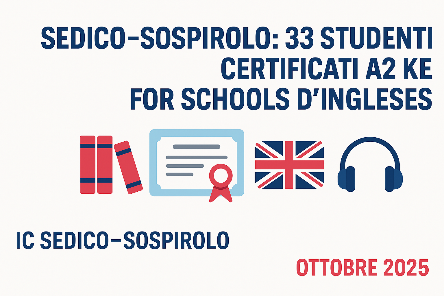 SEDICO. Per il secondo anno consecutivo l’Ic Sedico-Sospirolo ha portato a termine con successo il corso per ottenere la certificazione del livello A2 di conoscenza della lingua inglese. Dopo la positiva esperienza del 2023-24, l’anno scorso le insegnanti di lingua inglese nelle scuole medie di Sedico e Sospirolo, in accordo e sinergia con la dirigente scolastica, Lucia Fratturelli, hanno riproposto agli alunni la possibilità di raggiungere delle elevate competenze nell’uso della lingua.