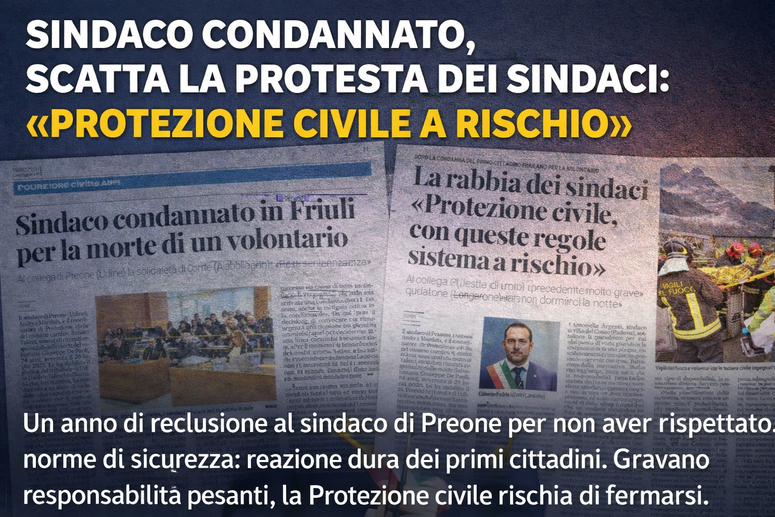 Un anno di reclusione, con pena sospesa: è la condanna inflitta al sindaco di Preone, in Friuli, Andrea Martini, per la morte del volontario della Protezione civile Giuseppe De Paoli, avvenuta nel luglio 2023 durante un intervento dopo il maltempo. Condannato anche il coordinatore comunale. Secondo il tribunale di Udine, non sarebbero state rispettate alcune norme sulla sicurezza, in particolare su formazione e informazione dei volontari. Disposto anche un risarcimento provvisorio di 50 mila euro ai familiari della vittima. La sentenza ha però scatenato una dura reazione tra i sindaci, soprattutto in Veneto. Il presidente di Anci Veneto, Mario Conte, parla apertamente di una decisione che rischia di diventare un precedente molto pericoloso. Il timore è chiaro: con responsabilità così pesanti, i sindaci potrebbero essere frenati nelle decisioni operative durante le emergenze, oppure rinunciare del tutto a certe attività. In gioco c’è il funzionamento stesso della Protezione civile.Tra i massimi esperti della Protezione Civile del territorio, il sindaco di Voltago, Giuseppe Schena, alla guida di uomini e donne nei giorni di Vaia e di molte altre emergenze che il territorio non si fa mancare