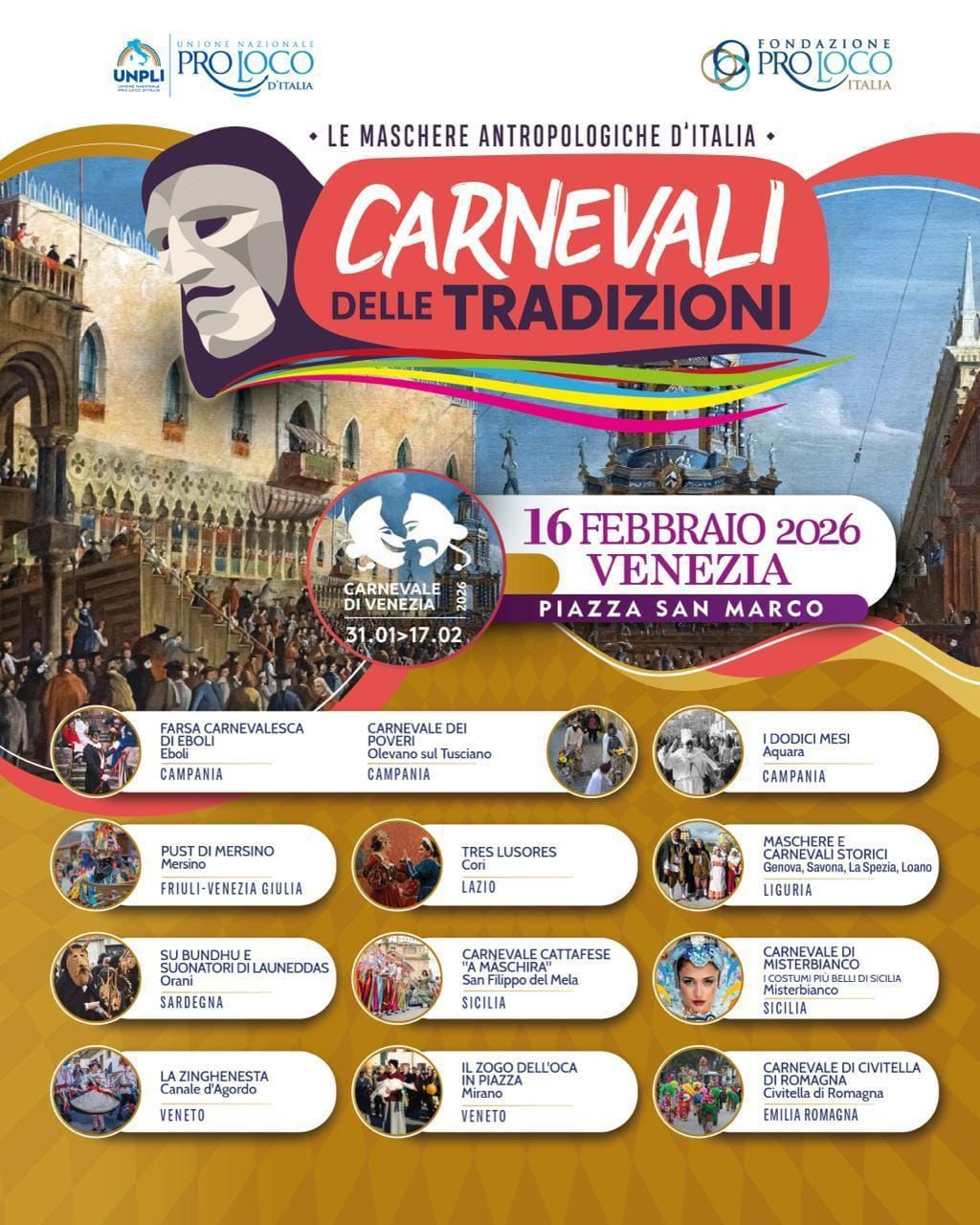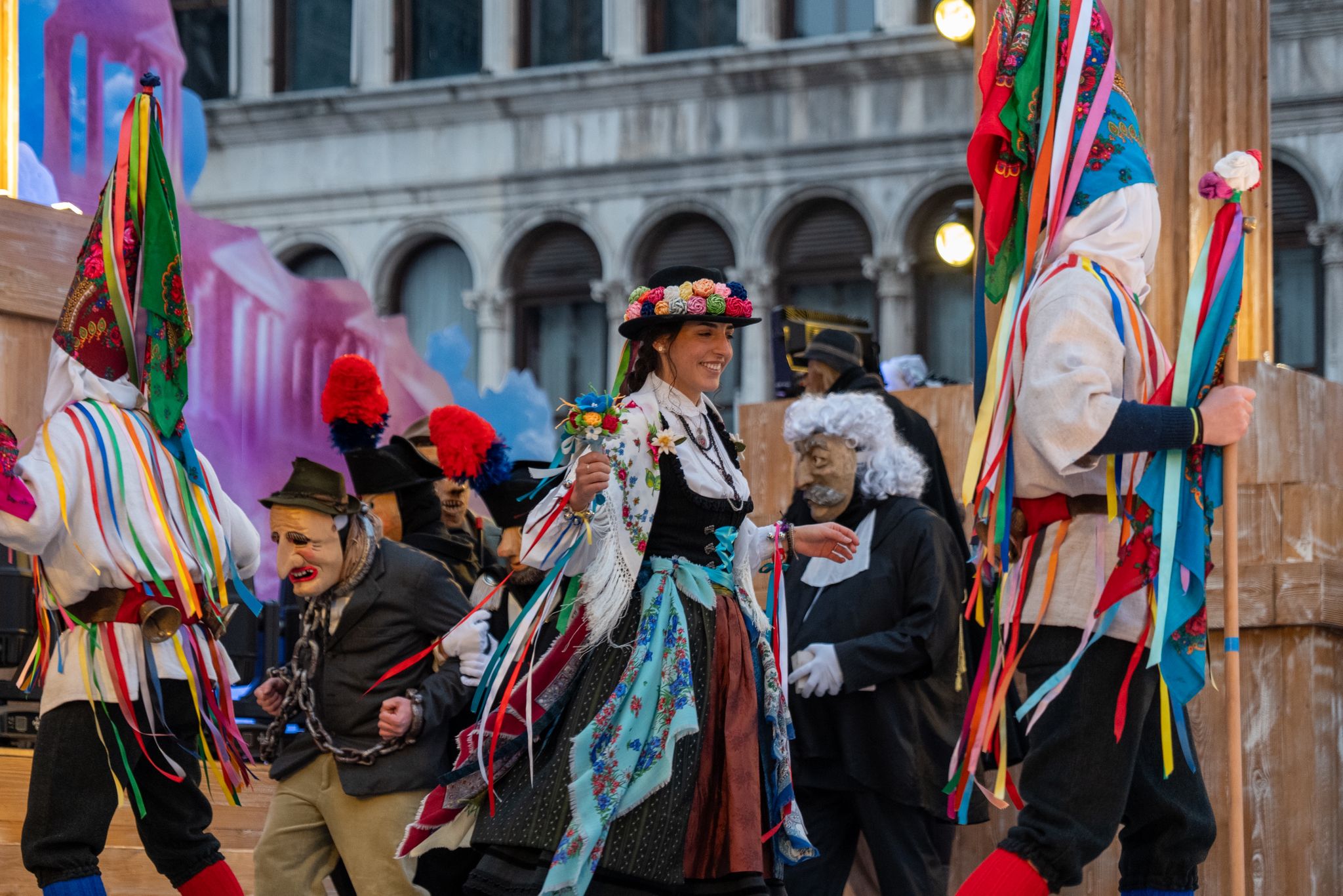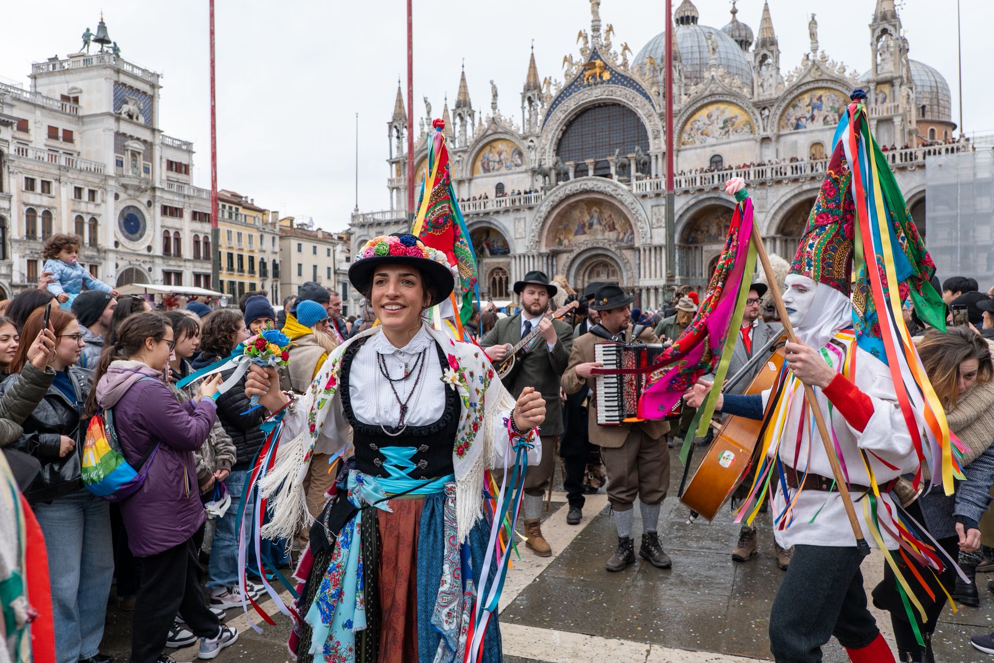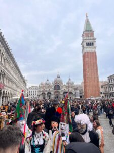 VENEZIA Oggi Piazza San Marco si è animata di colori, musica e tradizione grazie alla presenza della Zinghenesta di Canale D’Agordo, che ha portato in scena il Carnevale della tradizione del Bellunese. Tra costumi tipici, maschere e danze popolari, il pubblico ha potuto vivere un’esperienza autentica, immersa nelle radici culturali della regione. Bambini, famiglie e turisti hanno applaudito entusiasti, partecipando alle attività e fotografando i momenti più divertenti. L’iniziativa ha avuto un successo straordinario, confermando l’importanza di valorizzare le tradizioni locali durante le feste.