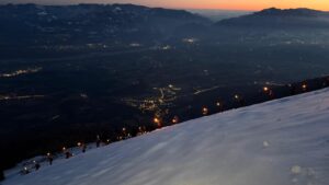 Le radici della manifestazione affondano però in un episodio distaccato, ma allo stesso tempo simbolico: la prima discesa dal Palmar avvenne la notte di Natale, con soli sei sciatori. Solo qualche anno dopo, il neonato Gruppo Escursionisti decise di legare stabilmente l’evento alla data del 16 febbraio, giorno di Santa Giuliana. Guardando avanti, il presidente accenna a nuove iniziative in preparazione per celebrare il sentiero De Bastiani e il cinquantesimo anniversario dalla scomparsa di Corrado De Bastiani: concerti, presentazioni e incontri. Progetti ancora in fase di definizione, anche per scaramanzia, e in attesa di essere condivisi ufficialmente con il Comune. Intanto, nella notte del Palmar, la luce delle cinquanta fiaccole ha ricordato che le tradizioni, quando vengono custodite insieme, continuano a illuminare il cammino di una comunità.