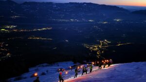 L’edizione 2026 ha assunto un significato particolare: ha infatti aperto ufficialmente le celebrazioni per il 40° anniversario dell’inaugurazione del sentiero Corrado de Bastiani, figura storica dell’escursionismo locale. La partecipazione ha visto cinquanta persone prendere parte alla discesa. Una novità importante è stata la collaborazione con l’Associazione Sant’Agapito, nata di recente con l’obiettivo di valorizzare le tradizioni dell’alta valle. «Una sinergia che si traduce già nella manutenzione dei sentieri e che guarda al futuro con l’intento di coinvolgere nuove generazioni e dare continuità al tessuto associativo locale» ha sottolineato il presidente. Dal punto di vista organizzativo, la macchina si è mossa sin dal mattino: mentre il ritrovo generale era fissato alle 14, un gruppo di perlustratori era già partito alle 9 per tracciare e mettere in sicurezza il percorso con apposite bandierine. La discesa ha preso il via alle 18 dalla cima del Monte Palmar, a quota 1480 metri, accompagnata dal suono delle campane. Un momento solenne, reso ancora più intenso da un passaggio commemorativo dedicato a una figura storica del gruppo, recentemente scomparsa. Il percorso ha condotto i partecipanti fino alle casere di Prà Montagna, dove l’Associazione Sant’Agabito ha offerto un rinfresco con dolci e tè brulè. Da lì, la discesa è proseguita con le pile frontali fino alla località Cesura, punto in cui sono state accese le torce a vento per la sfilata finale tra le vie di Cesio. La serata si è conclusa con un momento conviviale presso l’asilo del paese. «Il bilancio è più che positivo», ha commentato Isma.