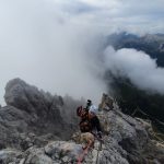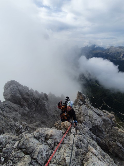 CORTINA Martedì 30 agosto ’22, la giornata già dalle prime ore del mattino non era delle migliori in quota sulle montagne di Cortina. Moreno Pesce, accompagnato da Lino De Nes ed il video maker Jacopo Bernard era pronto al Rifugio Pomedes per affrontare l’impegnativa salita ai 3.244 m. della cima più alta delle meravigliose Tofane, servite anche dagli impianti Freccia nel Cielo. Venticinque anni sono passati nella vita di Moreno Pesce, tra quella precedente e quella attuale da atleta paralimpico specialista della montagna in ogni stagione, capace di confrontarsi con obiettivi via via sempre più impegnativi. Sono scorse in un attimo nella memoria di Moreno, tutte le immagini della sua montagna fisica e quella racchiusa tra le rocce. La salita affrontata è stata sin da subito molto impegnativa sia per l’inclinazione del percorso in ferrata che per le condizioni meteo che mai hanno permesso di godere del panorama di questo monumento delle Dolomiti ampezzane. Causa le condizioni meteo giudicate non adatte durante l’ascesa da Lino De Nes, ha scelto ai fini della sicurezza di tutti e tre i componenti del team, di optare per una variante del percorso, che ha permesso di arrivare comunque in vetta. Quello era l’obiettivo. Così Moreno Pesce ha simbolicamente festeggiato i venticinque anni dall’incidente che gli ha causato l’amputazione della gamba sinistra, tornando alla croce posta sulla cima della Tofana di Mezzo. Un uomo, meglio un atleta paralimpico che si è rimesso in gioco ogni giorno, con enormi sacrifici, volontà e dedizione diventando il portavoce di una montagna possibile anche dopo un incidente invalidante come il suo. Appoggiato a quella croce, che è stata bagnata come segno del traguardo raggiunto, Moreno Pesce ha siglato quello che per lui è un risultato centrato, accompagnato da Lino De Nes, che oltre ad essere una guida tra le più carismatiche della montagna veneta, è per lui l’appoggio più importante dal punto di vista tecnico, lungo le vie di salita che ha sin qui affrontato. “Festeggio i 25 anni in croce insieme a Lio e Jacopo, bevendo un prosecco! Adesso ci sistemiamo un attimo e poi scendiamo. L’impresa per me è compiuta insieme a loro due”. La voce era stanca ma felice. Ogni vetta ha un sapore speciale, questa dà un senso profondo ad un percorso certamente non scontato, in un ambiente impervio di suo che diventa esempio di rinascita per tanti. Ora nel salotto della mamma di Moreno sta un’immagine datata 30 agosto ’22, “Croce Cima delle Tofane, l’altra vita”, quella dopo l’amputazione.
