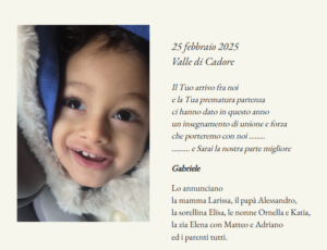 *** VALLE DI CADORE PER LE TRE RADIO BARBARA PAOLAZZI https://www.radiopiu.net/wordpress/wp-content/uploads/2026/02/PAOLAZZI-morte-bambino.mp3 condividi Share on FacebookShare on Facebook Share on XShare on X Post navigationPreviousPrevious post:GIORNALE RADIOPIU 27 FEBBRAIO 2026 DIRETTORE MIRKO MEZZACASAAltri postGIORNALE RADIOPIU 27 FEBBRAIO 2026 DIRETTORE MIRKO MEZZACASA27 Febbraio 2026TRUFFA SVENTATA, L’ANZIANA SMASCHERA IL FALSO MARESCIALLO27 Febbraio 2026SAN GREGORIO NELLE ALPI, INCIDENTE A MEZZOGIORNO: 58ENNE IN OSPEDALE27 Febbraio 2026DUE FERITI NELL’INCIDENTE DI VAL DI ZOLDO27 Febbraio 2026BRUGNACH, SENSO UNICO ALTERNATO DAL 3 AL 10 MARZO PER I LAVORI ALLA RETE DEL METANO27 Febbraio 2026OLTRE 30 MILIONI L’ANNO PER LA MONTAGNA: SVOLTA NEL BILANCIO REGIONALE27 Febbraio 2026