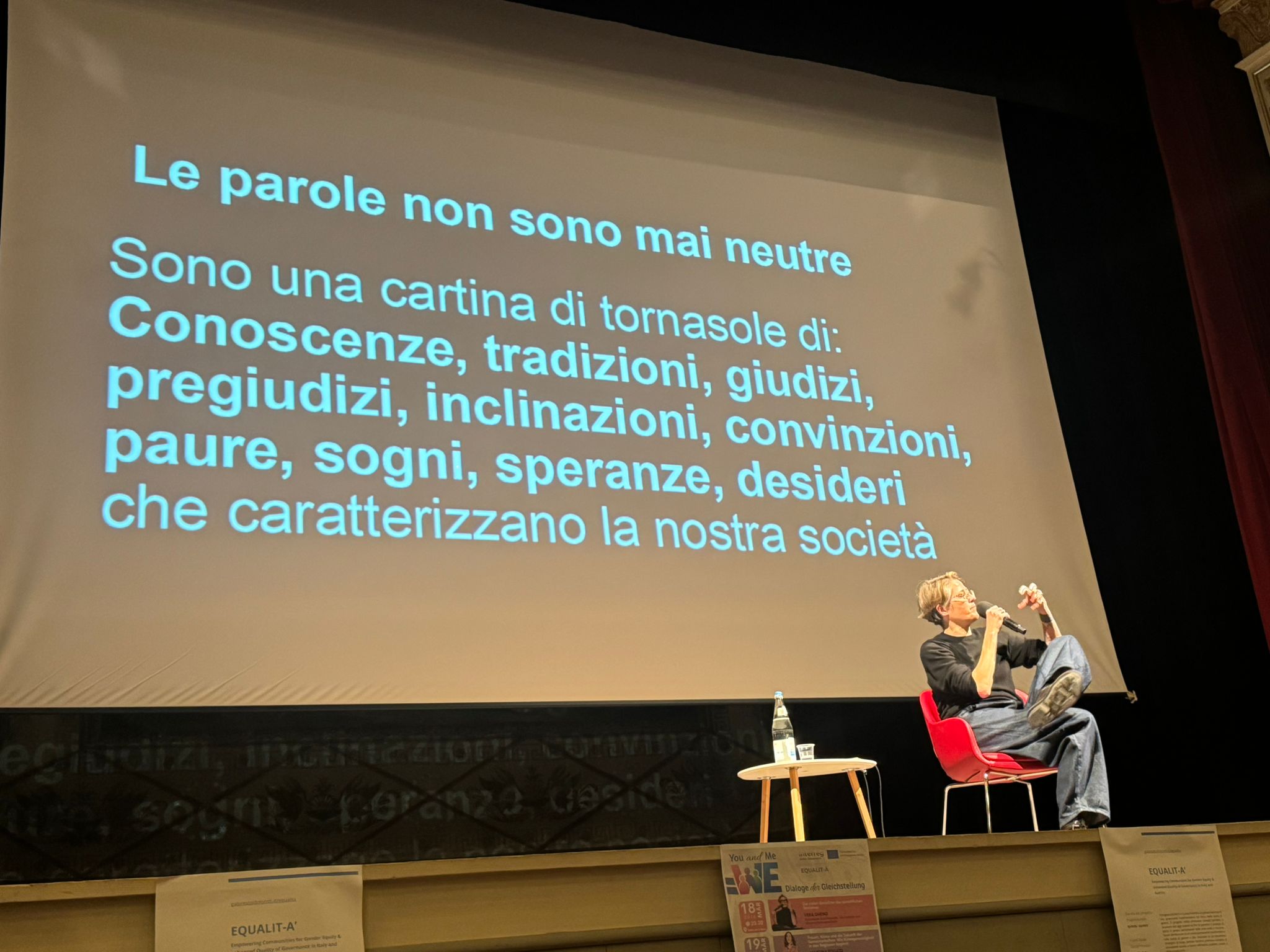 In chiusura, una risposta a chi tende a minimizzare questi temi, Gheno ha risposto: “Non siamo Ipad di prima generazione. E’ possibile occuparsi di più questioni contemporaneamente. Il cambiamento passa sì dalle parole e dall’attenzione al linguaggio, ma anche da azioni concrete, servizi adeguati e da un riconoscimento reale delle specificità, a partire anche dall’ambito medico”. Un avvio dunque denso e partecipato per You&Me:We, che si conferma fin da subito come uno spazio di confronto capace di intrecciare riflessione culturale e ricadute concrete sul territorio. Il prossimo appuntamento per questa sera, 19 marzo alle ore 20:30 sempre al teatro de la Sena con Martina Rogato, esperta di diversity equity, inclusion e sostenibilità e co-presidente di Women7 Italy con un intervento intitolato: “Donne, clima e futuro delle comunità: come la giustizia climatica parte dai territori”