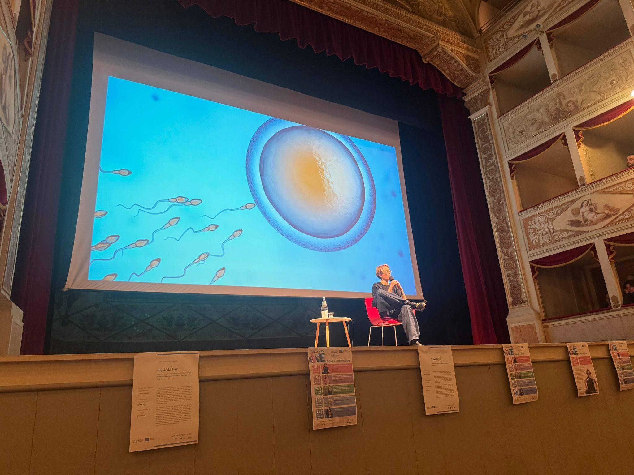 Gheno ha smantellato con argomentazioni solide e tesi supportate la narrazione tradizionale dello spermatozoo “eroe” che conquista un ovulo passivo, mostrando come già dagli anni Ottanta la biologia abbia restituito un quadro ben diverso: l’ovulo non è affatto inerme, ma seleziona e accoglie attivamente lo spermatozoo. Un cambio di prospettiva che, tuttavia, ha faticato a imporsi, segno – ha sottolineato- “di quanto anche la scienza, che consideriamo neutrale, sia attraversata da bias culturali”. Da qui il passaggio a un tema centrale: la non neutralità della conoscenza. “Non esiste uno sguardo neutro”- ha spiegato – “perché ogni sapere è legato all’esperienza e alla posizione di chi osserva”. Un ragionamento che si riflette direttamente nella lingua, strumento tutt’altro che imparziale.